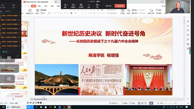 9月22日,校团委邀请马克思主义学院教授杨增强开展名为《新世纪历史决议,新时代奋进号角--长时段历史视域下十九届六中全会精神》的线上专题讲座,为我校团学干部和团员代表解读十九届六中全会决议。杨增强教授从十九届六中全会的主要内容和历史定位、十九届六中全会的贡献、十八大以来取得的伟大成就、中国共产党最大的政治优势和特点等方面解读全会决议,重点解读了十九届六中全会的贡献和十八大以来取得的伟大成就,深刻总结了党的十八大以来党和国家事业取得的历史性成就、发生的历史性变革。