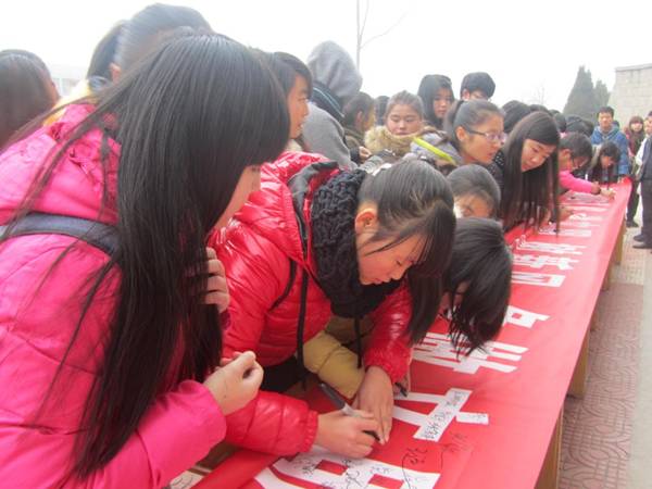 签名仪式开始后,人文系师生共同在印有“告别不文明行为、争做文明大学生”的横幅上郑重地签下了自己的名字,签字仪式现场秩序井然,同学们热情高涨。