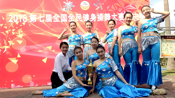 10月22日至27日,第七届全国全民健身操舞大赛总决赛在深圳龙岗举行,我校参赛队分别获得全国大众健美操(三级)特等奖、民族健身操舞(傣族舞)一等奖、自选轻器械(响扇)一等奖和有氧舞蹈二等奖的优异成绩。体育教学研究部教师张馨娇获得“年度优秀教练员”称号。